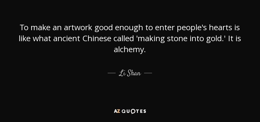 To make an artwork good enough to enter people's hearts is like what ancient Chinese called 'making stone into gold.' It is alchemy.
