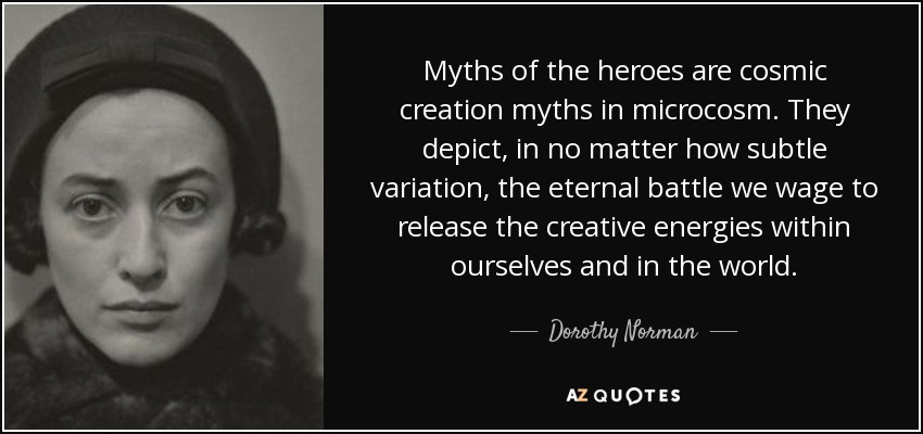 Myths of the heroes are cosmic creation myths in microcosm. They depict, in no matter how subtle variation, the eternal battle we wage to release the creative energies within ourselves and in the world.