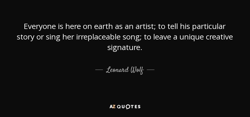 Everyone is here on earth as an artist; to tell his particular story or sing her irreplaceable song; to leave a unique creative signature.