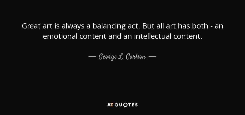 Great art is always a balancing act. But all art has both - an emotional content and an intellectual content.
