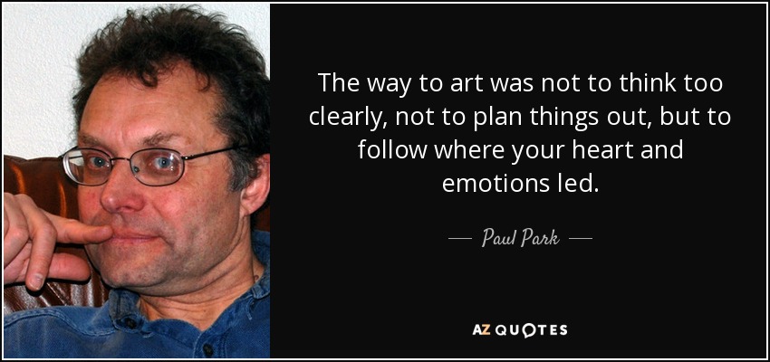 The way to art was not to think too clearly, not to plan things out, but to follow where your heart and emotions led.
