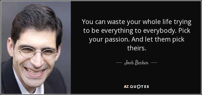 You can waste your whole life trying to be everything to everybody. Pick your passion. And let them pick theirs.