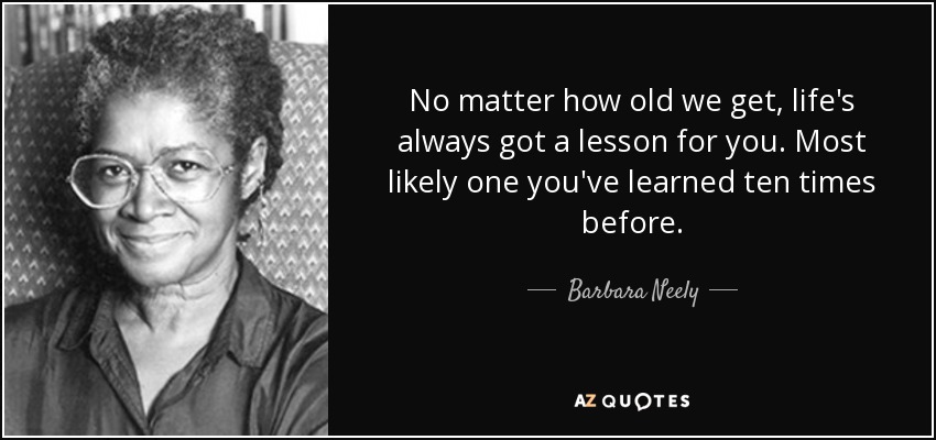 No matter how old we get, life's always got a lesson for you. Most likely one you've learned ten times before.