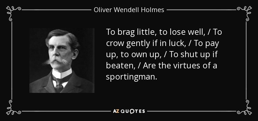 To brag little, to lose well, / To crow gently if in luck, / To pay up, to own up, / To shut up if beaten, / Are the virtues of a sportingman.