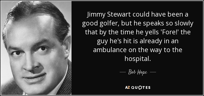 Jimmy Stewart could have been a good golfer, but he speaks so slowly that by the time he yells 'Fore!' the guy he's hit is already in an ambulance on the way to the hospital.