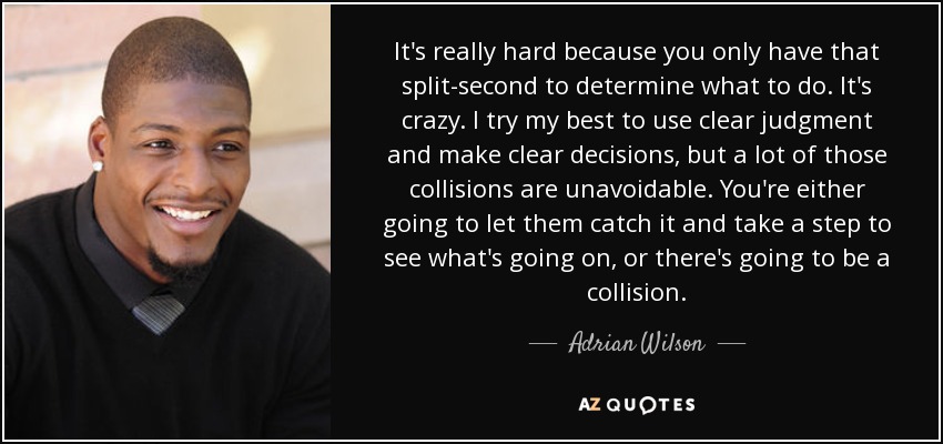 It's really hard because you only have that split-second to determine what to do. It's crazy. I try my best to use clear judgment and make clear decisions, but a lot of those collisions are unavoidable. You're either going to let them catch it and take a step to see what's going on, or there's going to be a collision.