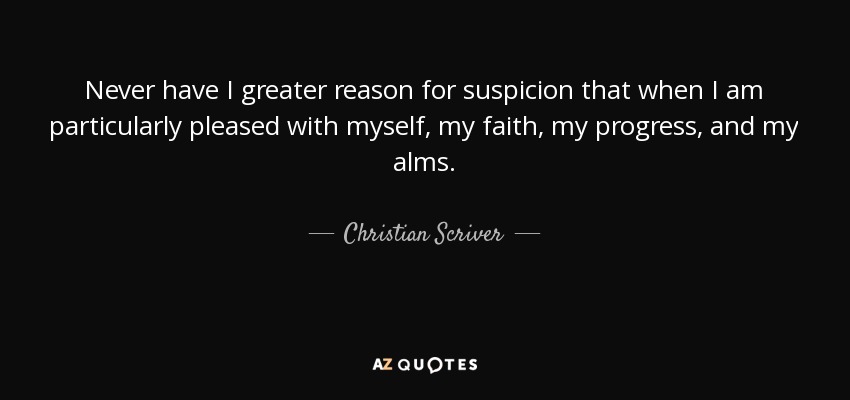 Never have I greater reason for suspicion that when I am particularly pleased with myself, my faith, my progress, and my alms.