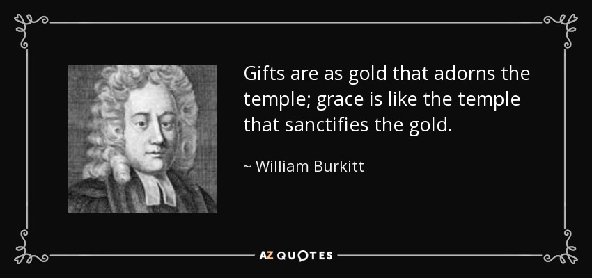 Gifts are as gold that adorns the temple; grace is like the temple that sanctifies the gold.