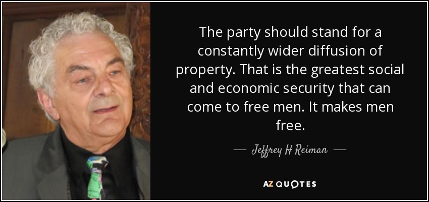The party should stand for a constantly wider diffusion of property. That is the greatest social and economic security that can come to free men. It makes men free.