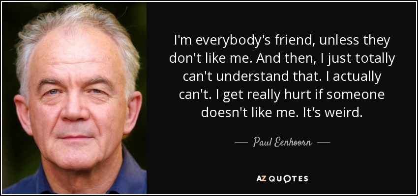 I'm everybody's friend, unless they don't like me. And then, I just totally can't understand that. I actually can't. I get really hurt if someone doesn't like me. It's weird.