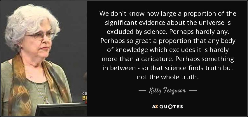 We don't know how large a proportion of the significant evidence about the universe is excluded by science. Perhaps hardly any. Perhaps so great a proportion that any body of knowledge which excludes it is hardly more than a caricature. Perhaps something in between - so that science finds truth but not the whole truth.