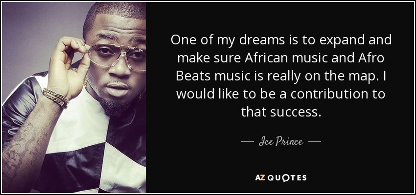 One of my dreams is to expand and make sure African music and Afro Beats music is really on the map. I would like to be a contribution to that success.