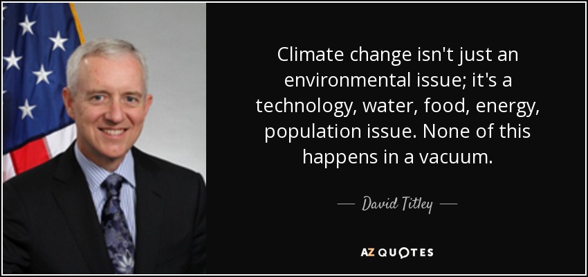 Climate change isn't just an environmental issue; it's a technology, water, food, energy, population issue. None of this happens in a vacuum.