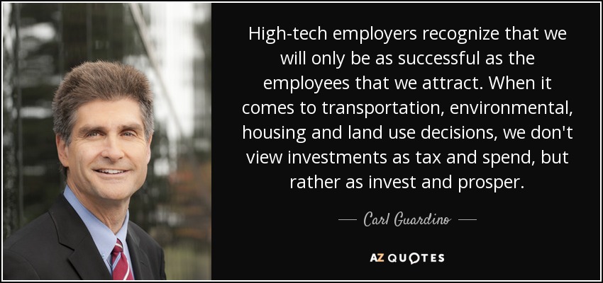 High-tech employers recognize that we will only be as successful as the employees that we attract. When it comes to transportation, environmental, housing and land use decisions, we don't view investments as tax and spend, but rather as invest and prosper.