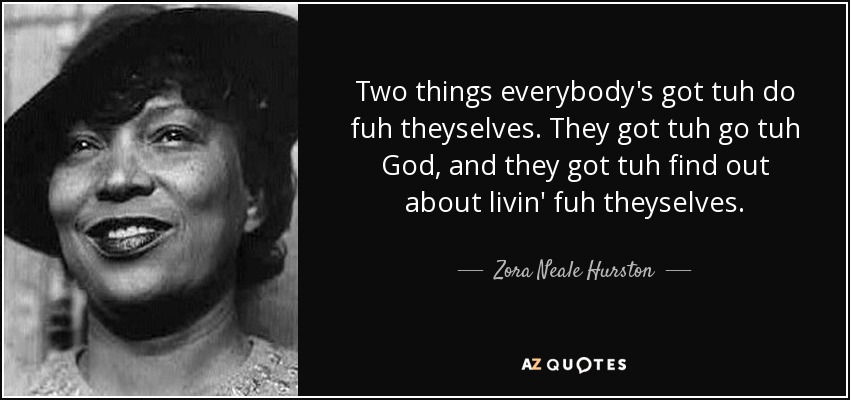 Zora Neale Hurston, Alice Walker (1979). “I Love Myself when I Am Laughing ... and Then Again when I Am Looking Mean and Impressive: A Zora Neale Hurston Reader”, p.165, Feminist Press at CUNY