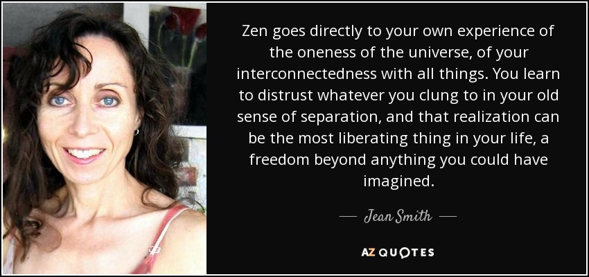 Zen goes directly to your own experience of the oneness of the universe, of your interconnectedness with all things. You learn to distrust whatever you clung to in your old sense of separation, and that realization can be the most liberating thing in your life, a freedom beyond anything you could have imagined.