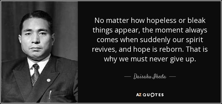 No matter how hopeless or bleak things appear, the moment always comes when suddenly our spirit revives, and hope is reborn. That is why we must never give up.