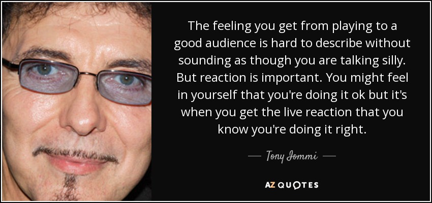 The feeling you get from playing to a good audience is hard to describe without sounding as though you are talking silly. But reaction is important. You might feel in yourself that you're doing it ok but it's when you get the live reaction that you know you're doing it right.