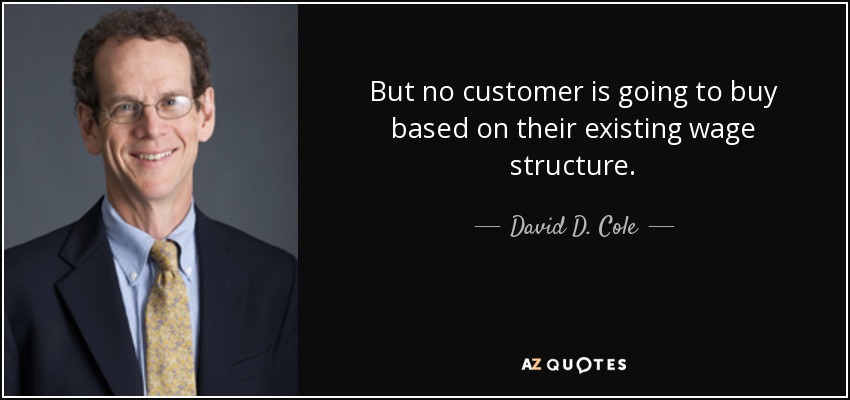 But no customer is going to buy based on their existing wage structure.
