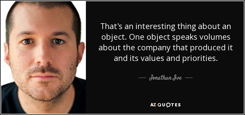 That's an interesting thing about an object. One object speaks volumes about the company that produced it and its values and priorities.
