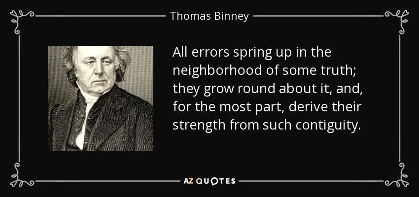 All errors spring up in the neighborhood of some truth; they grow round about it, and, for the most part, derive their strength from such contiguity.