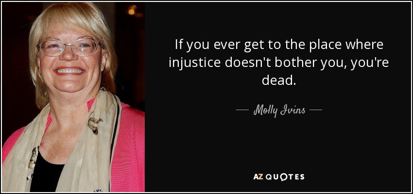 If you ever get to the place where injustice doesn't bother you, you're dead.