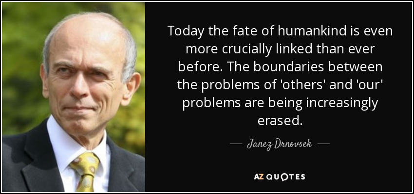 Today the fate of humankind is even more crucially linked than ever before. The boundaries between the problems of 'others' and 'our' problems are being increasingly erased.