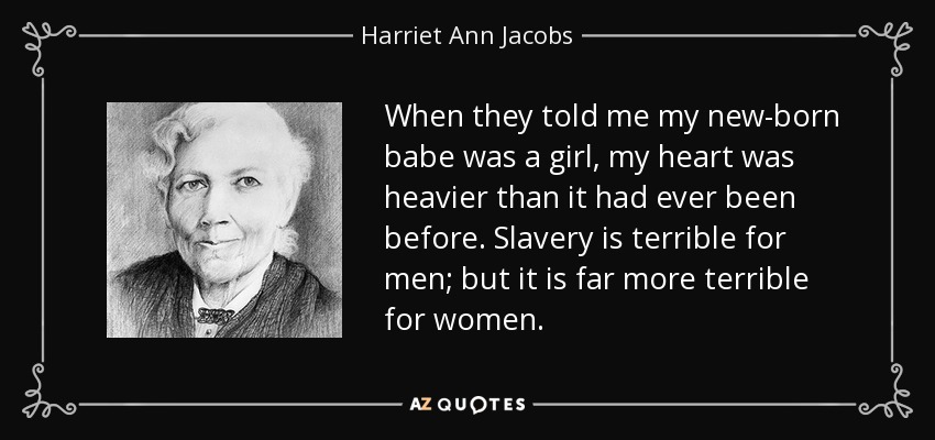 When they told me my new-born babe was a girl, my heart was heavier than it had ever been before. Slavery is terrible for men; but it is far more terrible for women.