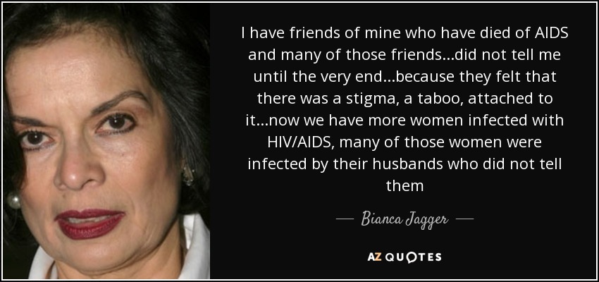 I have friends of mine who have died of AIDS and many of those friends...did not tell me until the very end...because they felt that there was a stigma, a taboo, attached to it...now we have more women infected with HIV/AIDS, many of those women were infected by their husbands who did not tell them