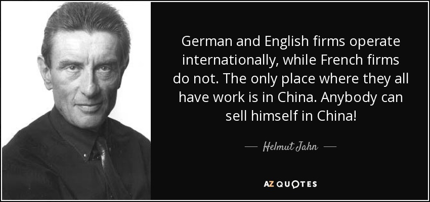 German and English firms operate internationally, while French firms do not. The only place where they all have work is in China. Anybody can sell himself in China!