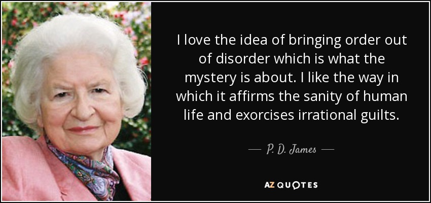 I love the idea of bringing order out of disorder which is what the mystery is about. I like the way in which it affirms the sanity of human life and exorcises irrational guilts.