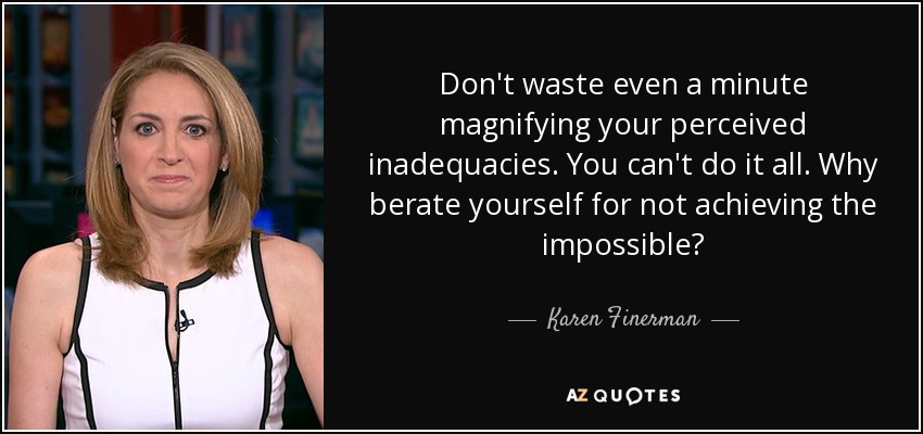 Don't waste even a minute magnifying your perceived inadequacies. You can't do it all. Why berate yourself for not achieving the impossible?