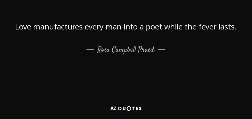Love manufactures every man into a poet while the fever lasts.