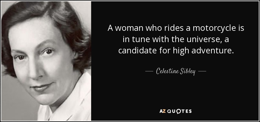 A woman who rides a motorcycle is in tune with the universe, a candidate for high adventure.