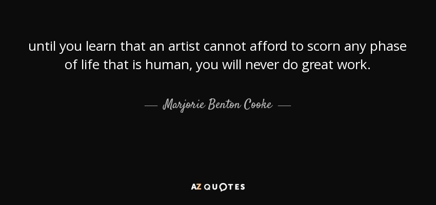 until you learn that an artist cannot afford to scorn any phase of life that is human, you will never do great work.