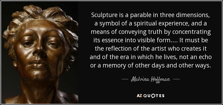 Sculpture is a parable in three dimensions, a symbol of a spiritual experience, and a means of conveying truth by concentrating its essence into visible form. ... It must be the reflection of the artist who creates it and of the era in which he lives, not an echo or a memory of other days and other ways.