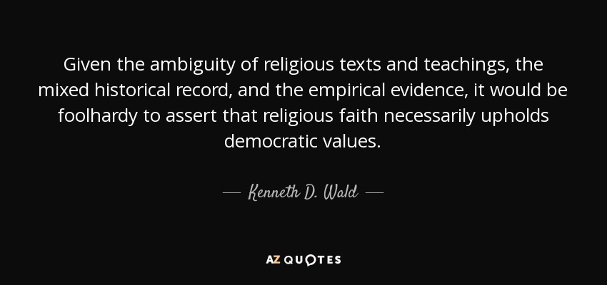 Given the ambiguity of religious texts and teachings, the mixed historical record, and the empirical evidence, it would be foolhardy to assert that religious faith necessarily upholds democratic values.