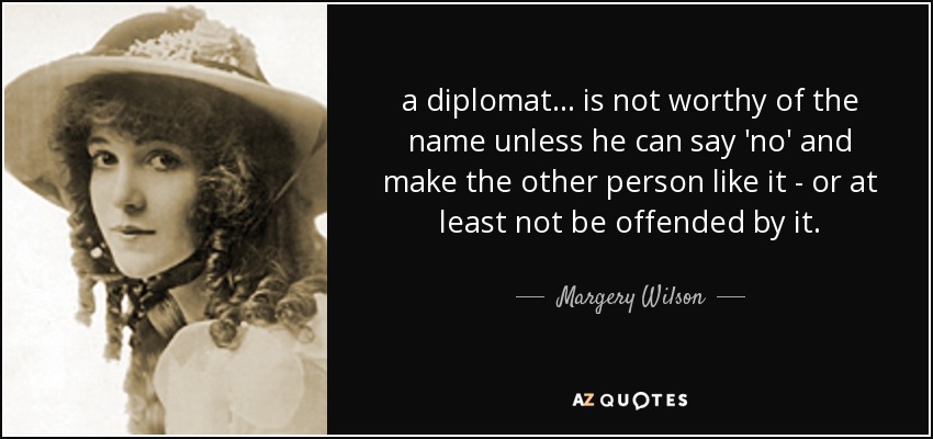 a diplomat ... is not worthy of the name unless he can say 'no' and make the other person like it - or at least not be offended by it.
