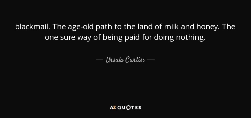 blackmail. The age-old path to the land of milk and honey. The one sure way of being paid for doing nothing.