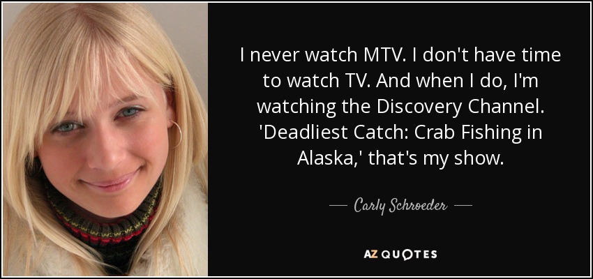 I never watch MTV. I don't have time to watch TV. And when I do, I'm watching the Discovery Channel. 'Deadliest Catch: Crab Fishing in Alaska,' that's my show.