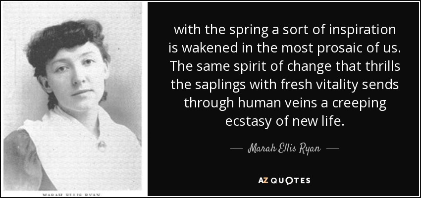 with the spring a sort of inspiration is wakened in the most prosaic of us. The same spirit of change that thrills the saplings with fresh vitality sends through human veins a creeping ecstasy of new life.