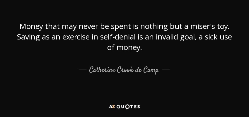 Money that may never be spent is nothing but a miser's toy. Saving as an exercise in self-denial is an invalid goal, a sick use of money.