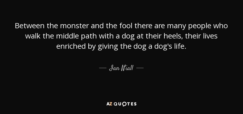 Between the monster and the fool there are many people who walk the middle path with a dog at their heels, their lives enriched by giving the dog a dog's life.
