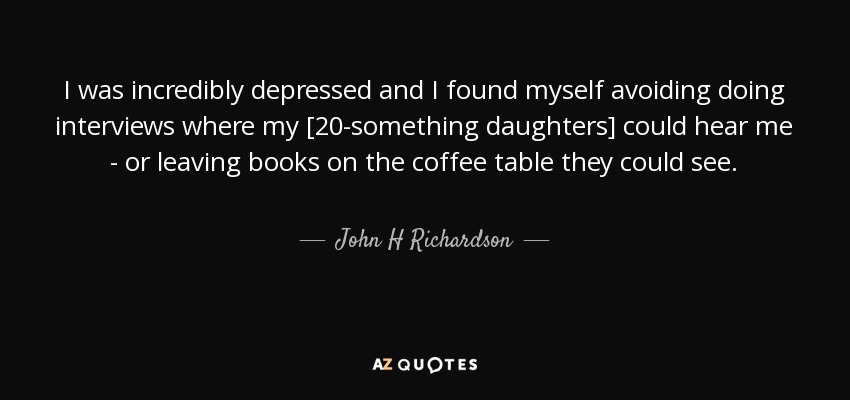 I was incredibly depressed and I found myself avoiding doing interviews where my [20-something daughters] could hear me - or leaving books on the coffee table they could see.