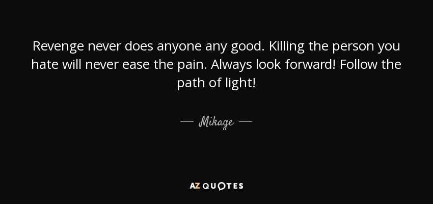 Revenge never does anyone any good. Killing the person you hate will never ease the pain. Always look forward! Follow the path of light!
