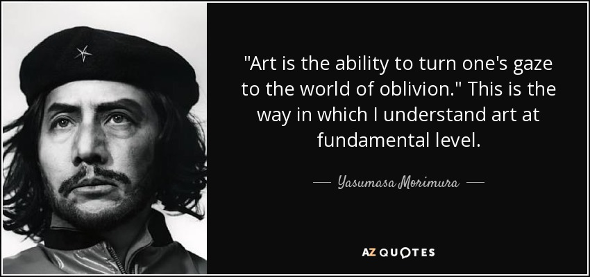 "Art is the ability to turn one's gaze to the world of oblivion." This is the way in which I understand art at fundamental level.
