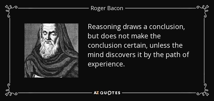 There are two modes of acquiring knowledge, namely by reasoning and experience. Reasoning draws a conclusion and makes us grant the conclusion, but does not make the conclusion certain, nor does it remove doubt so that the mind may rest on the intuition of truth, unless the mind discovers it by the path of experience.
