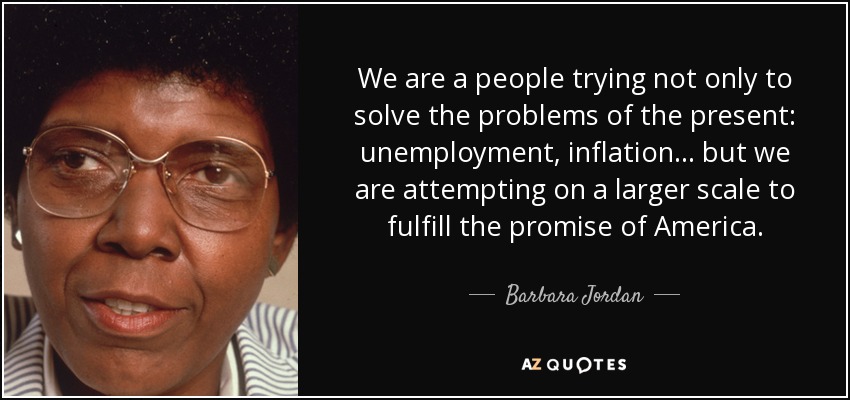 We are a people trying not only to solve the problems of the present: unemployment, inflation... but we are attempting on a larger scale to fulfill the promise of America.