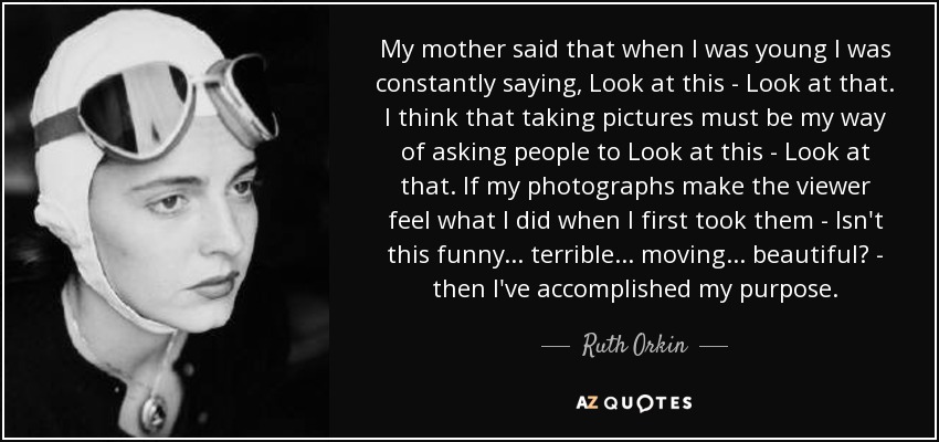 My mother said that when I was young I was constantly saying, Look at this - Look at that. I think that taking pictures must be my way of asking people to Look at this - Look at that. If my photographs make the viewer feel what I did when I first took them - Isn't this funny... terrible... moving... beautiful? - then I've accomplished my purpose.