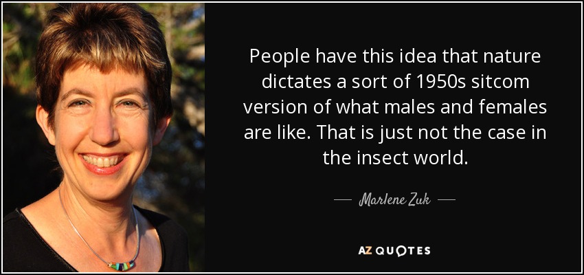 People have this idea that nature dictates a sort of 1950s sitcom version of what males and females are like. That is just not the case in the insect world.